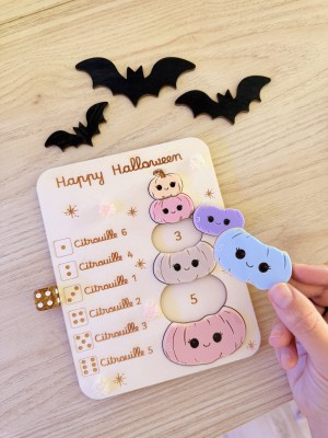 un joli jeu entièrement fait main pour s'amuser en famille, à table pour patienter jusqu'à Halloween & qui peut être posé debout pour en faire une jolie décoration